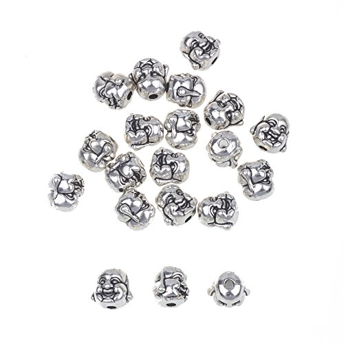 RUBYCA 20PCS Laughing Buddha Small Spiritual Metal Beads Silver Color Spacer Jewelry Making Bracelet