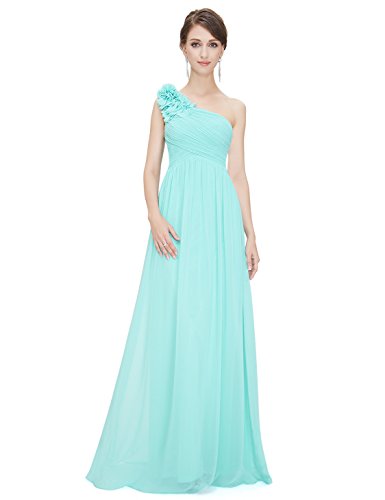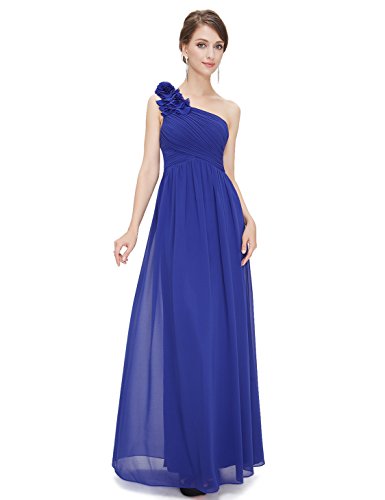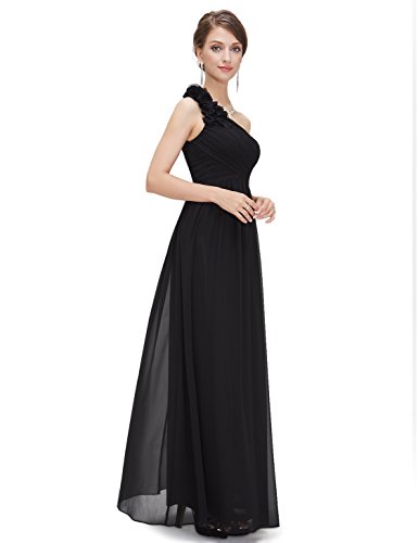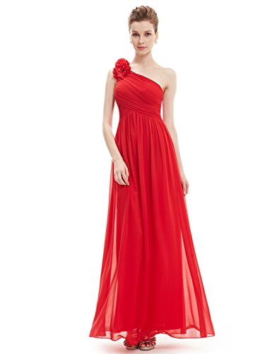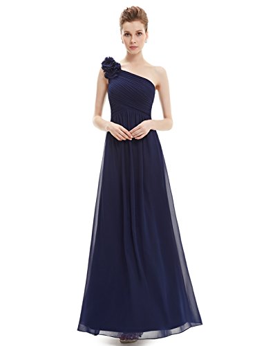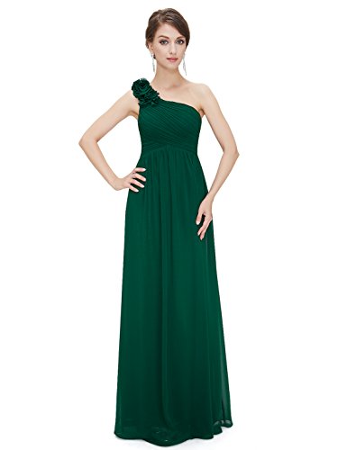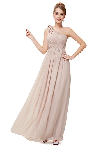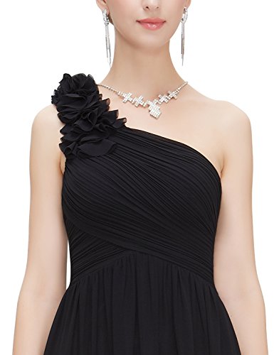 One shoulder long party dress. Padded enough for "no bra" option. Stylish hand-made flower decorates the single shoulder. Unique ruched bust creates an elegant silhouette. Simple and fashion design. Concealed zipper up the back. Lining, no stretch