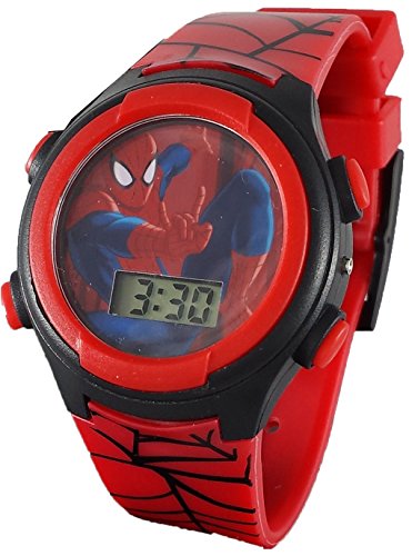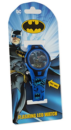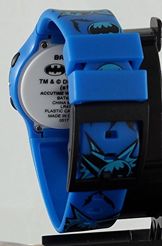 This is a really nice kids watch. It lights up in blue,red and yellow for 10 seconds with the push of the right corner button. The band adjusts from 5.5-8 inches with 10 holes on the band and a buckle clasp that will fit your child's wrist perfectly. The band also has Batman graphics along the entire length.Feature
