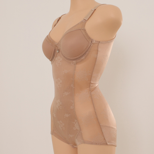 몰드 올인원 직조와 고밀도 스폰지를 결합하여 몰드를 찍어 형태성이 좋고 쭈글 거리는 현상이 거의 없음.풀사이드 기능의 컵으로 설계하고 컵아래 메쉬 테이프가 활동성을 좋게 해 줌. 몸판 기능으로는 앞판 안감에 숨겨진 타미 기능이 있어 아랫배를 효과적으로 눌러 주며 다리쪽은 원단을 접어 봉제 하여 배기지 않게 처리함.