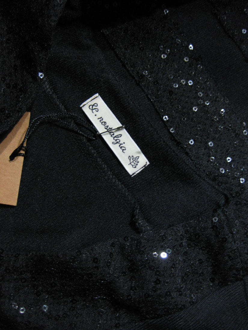 首元と裾にあしらわれたスパンコールが、