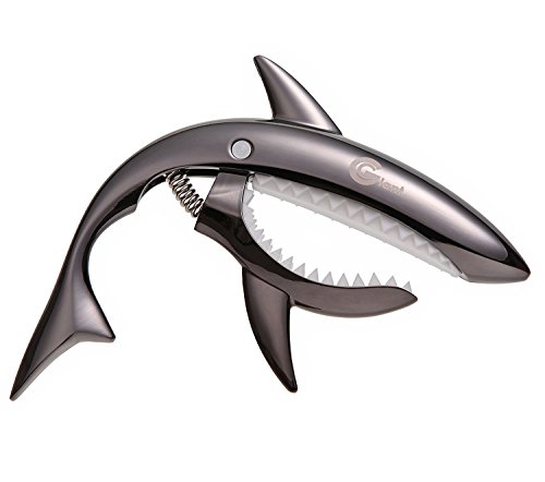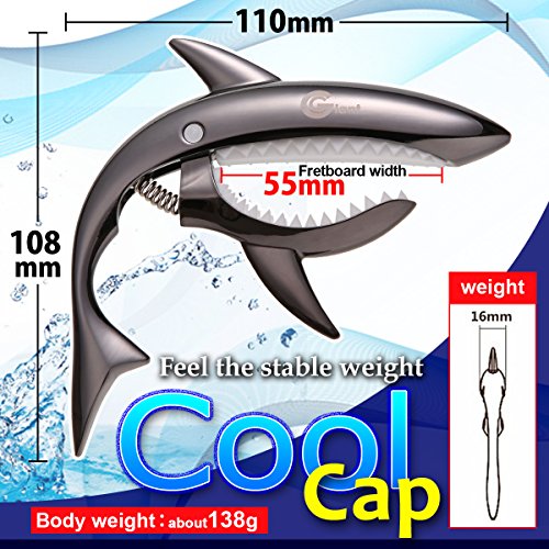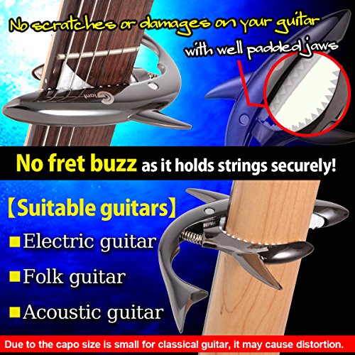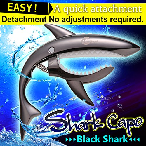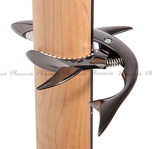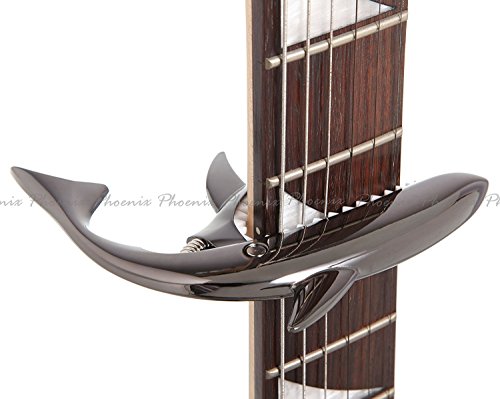 Phoenix One Touch Shark Capo, Guitar maintenance fiber cloth, 0.71 mm Teardrop Type Pick, and maker's guarantee: 4 item set! Fork Electric Acoustic (BLACK)