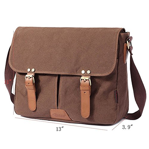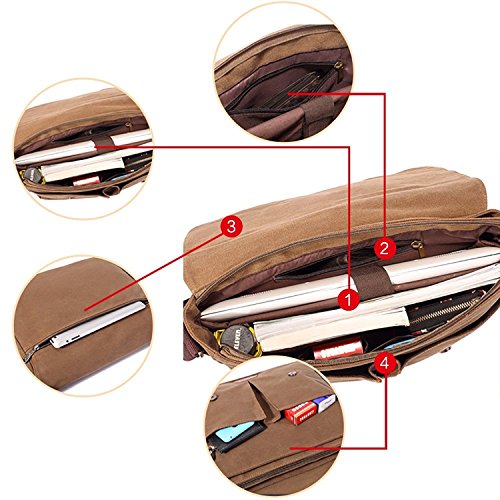 FLYMEI Canvas Messenger Bag 14Inch Laptop Shoulder Bags Bookbag School Bag Crossbody Sling Bag Working Bag for Men and Women