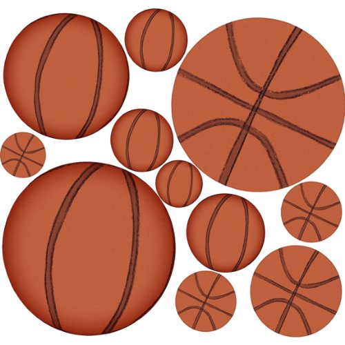 -. Feature : 1 sheet with 11 basketball stickers / Stickers measure: (2) 5", 4", 3", 2.5", (4) 2", (2) 1.5". / Easy to use peel and stick product / Repositions and removes without damage or residue / For use on flat surfaces. Items may not work on textured surfaces.