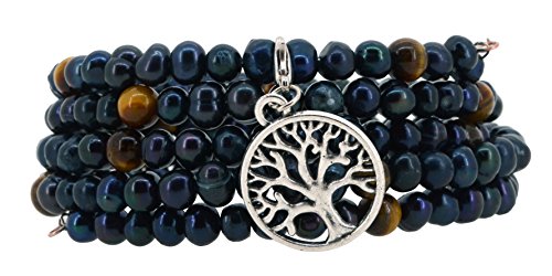 -. Feature : Long 5 Times Wrap Around Bracelet Kit, Made from Black Dyed Freshwater Cultured Pearls, Simulated Tiger Eye, and Metal Memory Wire; / Great and One of the Most Popular Graduation, Anniversary, Thank You, Birthday, Last Minute, Get Well, Mother's Day, or Christmas Gifts for Women, Ladies, and Girls; / Handmade Real Freshwater Cultured Pearl Wrapped Bracelet with a Charm Pendant; / Removable Alloy Charm: Tree of Life, Om, Peace, Lotus Flower, Fleur de Lis, Anchor, Elephant, or Mom; Free Velvet Mandala Crafts Gift Bag; / Cultured Pearl Size: 6 to 7mm; Luster: Medium; Shape: Potato; One Size Fits Most;