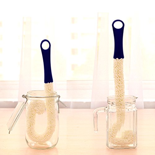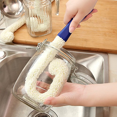 Cleaning Cloth- Long Neck Foam Tipped Wine Bottle Glass Decanter Washing Brush Scrubber Plus for Home and Kitchen Blue