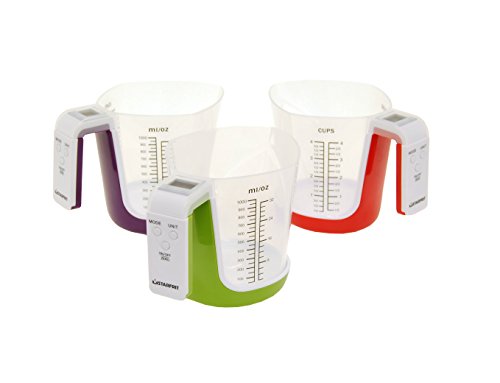 - Detachable measuring cup; comes in three colors, green, orange and purple (Colors may vary)