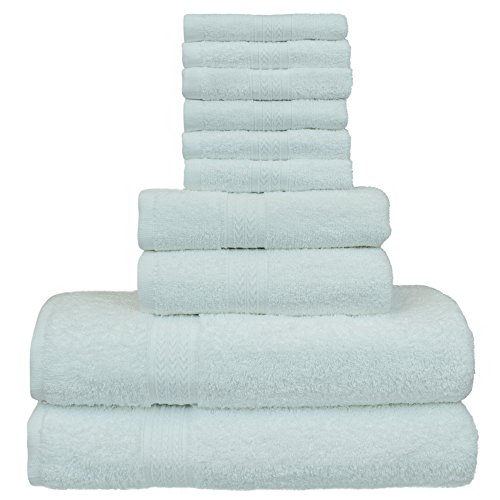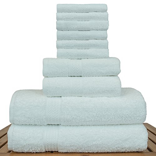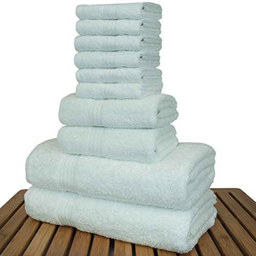 Eco Cotton Ten Piece Towel Set - White - Dobby Border - Set of 10