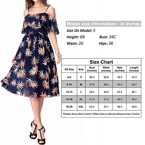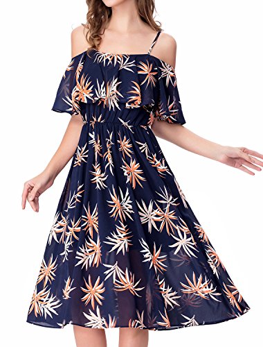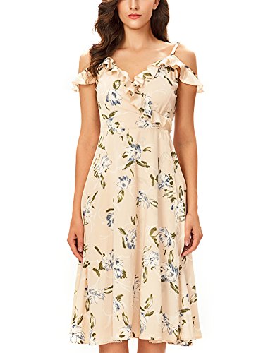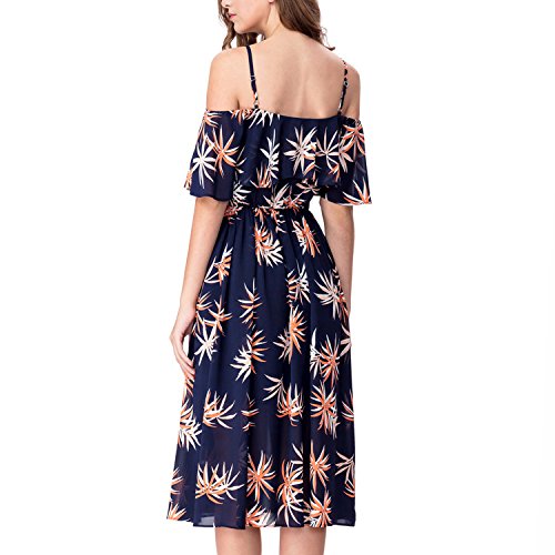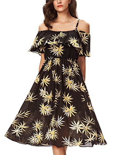 Noctflos Women's Spaghetti Cold Shoulder Ruffle Flounce Chiffon Causual Dress