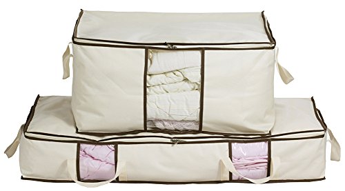 Misslo Jumbo Storage Bags for Comforters, Blanket, Clothes (2 Packs, Beige)