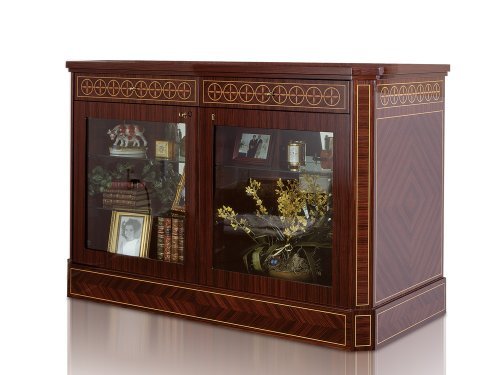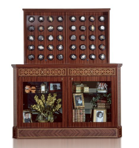-. Feature : Madrona Burl Cabinet with Glass Doors measuring (inches) 44H x 55W X 28D. / 40 Independently programmable Rotorwind Watch Winders. / Rotorwind is programmable in either 10 minute cycles with an estimated 900-950 Turns-Per-Day (TPD) or 15 minute cycles with an estimated 750 TPD. / Includes Remote Control. / Made in the USA.