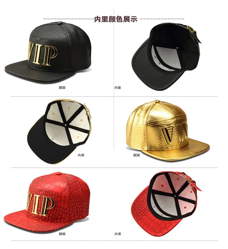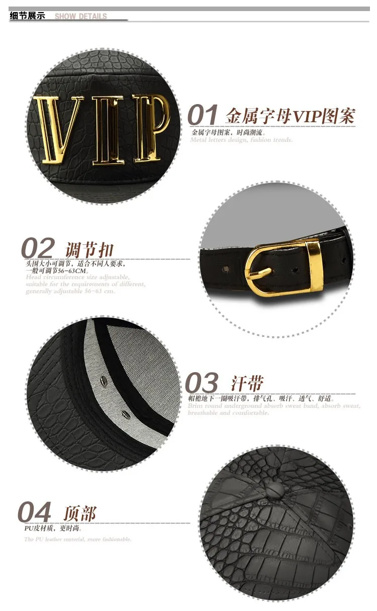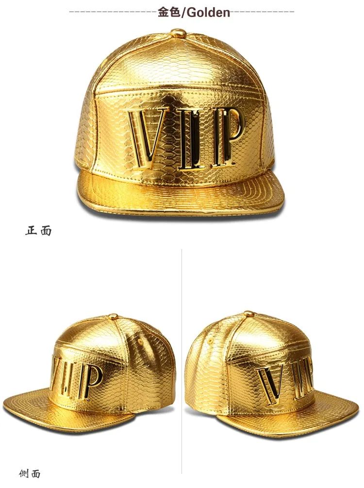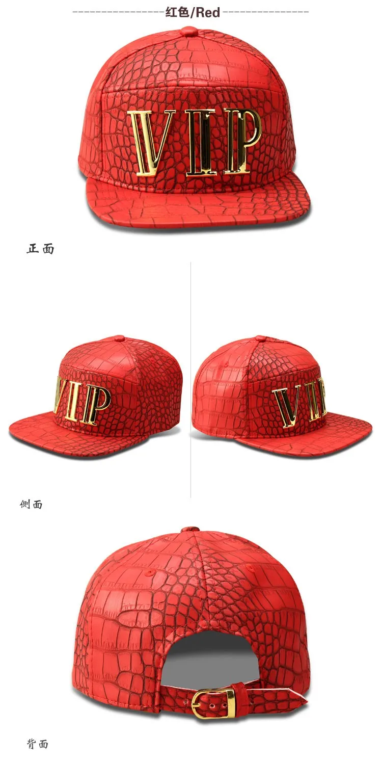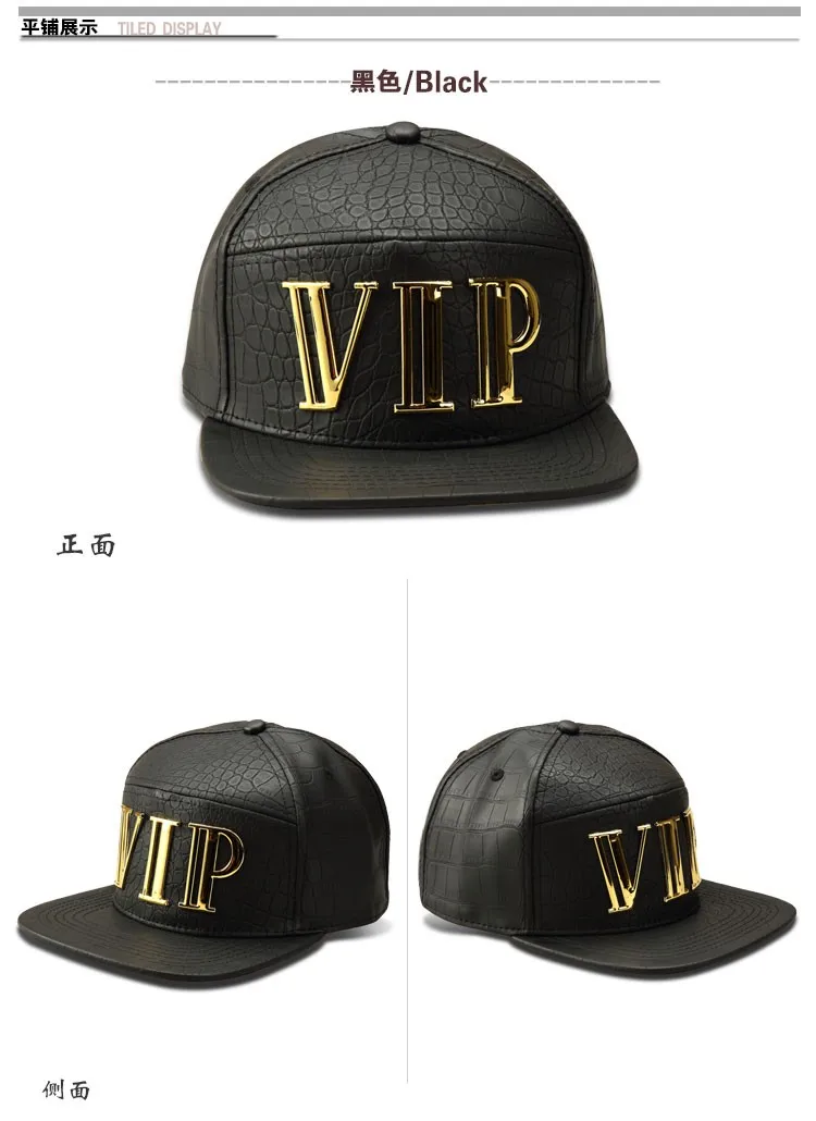 New Fashion Mens Hip Hop Vip Baseball Caps PU Leather Casual Unisex Outdoor Hats Gold/Black/Red Snapback for Christmas Gift