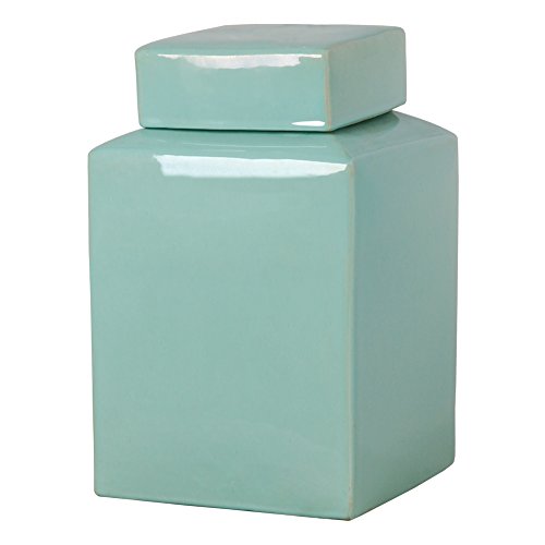 Emissary Home & Garden Square Ginger Jar, 15" H, Vintage Teal