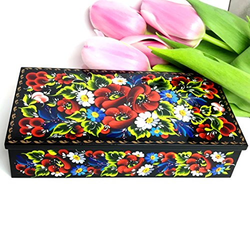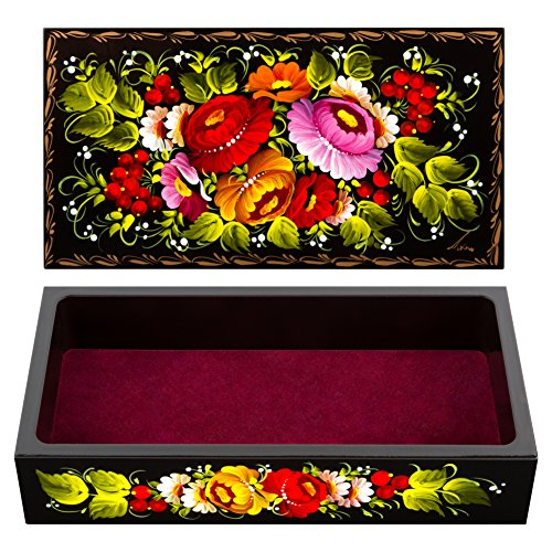 -. Binding : Kitchen -. Brand : UA Creations -. Feature : Item dimensions: 7.9" x 4.15" x 1.8". Size - Medium. Just an ideal choice for all your most valuable jewelry! / Each jewelry box is professionally painted and signed by artist - limited quantity available! / Carefully made of wood, hand-decorated with high quality acryl paints and coated with deluxe lacquer finish / Comes in a glossy plain white cardboard box, ready for your gift inscription. This item can serve as an elegant gift for your Loved Ones! / These boxes are truly unique and our stock is really limited! We can not get tens of these items from the manufacturer, only a few of each pattern! Just press the "Add to Cart" yellow button at the right top of this page to get your Exceptional Jewelry Box rushed straight to your door! -. IsAutographed : 1 -. Label : Sapfir -. Manufacturer : Sapfir -. ProductGroup : Home -. ProductTypeName : HOME -. Publisher : Sapfir -. Studio : Sapfir -. Title : Petrykiv Ethnic Rectangular Wooden Lacquer Jewelry Box with Lid, Hand Painted Flowers on Black