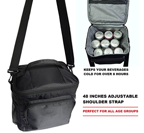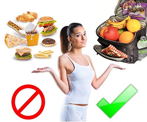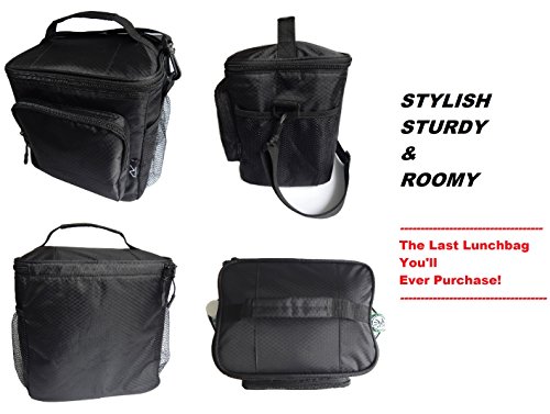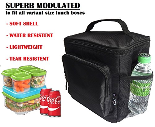 LARGE SIZE (9.5”W x 7.5”D x 8.5”H): Nicely accommodates stacked food storage containers and water bottles. Also has a front zipper pocket to keep loose items e.g. keys, phone and wallet, making it easily accessible.