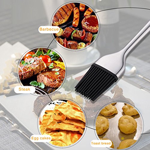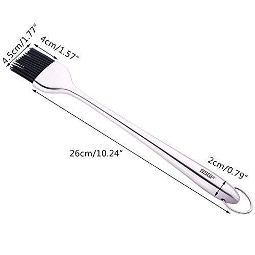 - ★100% FOOD GRADE MATERIAL: stainless steel silicone is 100% BPA free, can touch food directly without causing any effect. It can withstand heat to 200 Celsius degree, non-stick, stain & odor resistant. Grill basting brush is safe to use in oven, microwave, dishwasher & freezer.