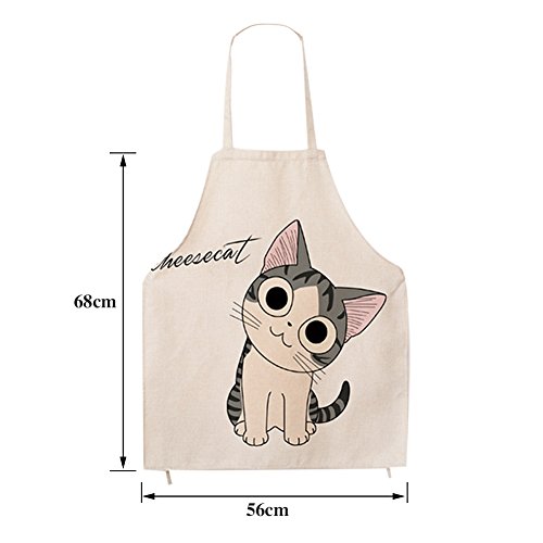 Super Cute Cartoon Cat Print Pattern Apron Burlap Cotton Unisex Bib Apron Chef Kitchen Cooking Baking Aprons for Men or Women (Adults)
