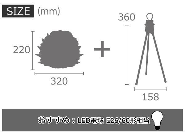 | 仕様 | 組立式 定格電圧:100V 50/60Hz 点灯:中間スイッチ(コンセント) 電球:E26/60形相当(LED/1個)※別売 |