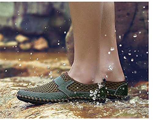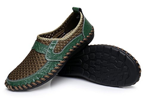 Binding : Apparel Product Description Description: Shoe Type: Casual Shoes Toe Type: Round Toe Closure Type: Slip On Gender: Men Occasion: Casual,Sport Season: Spring,Summer,Autumn Color: Green,Navy Blue, Brown Pattern: Solid Material: Upper Material: Leather Mesh Fabric Sole Material :Rubber Below it will help us choose right size for shoes. Size Chart : EU38 = US size 6.5 D(M) = Foot length 240 mm = 9.45 inch EU39 = US size 7 D(M) = Foot length 245 mm = 9.65 inch EU40 = US size 7.5 D(M) = Foot length 250 mm = 9.84 inch EU41 = US size 8 D(M) = Foot length 255 mm = 10.04 inch EU42 = US size 8.5 D(M) = Foot length 260 mm = 10.23inch EU43 = US size 9 D(M)= Foot length 265 mm =10.4 inch EU44 = US size 10 D(M) = Foot length 270mm = 10.6 inch EU45 = US size 10.5 D(M) = Foot length 275 mm = 10.82 inch EU46 = US size 11 D(M)= Foot length 280 mm = 11.02 inch If you have questions before buying, please contact us!
