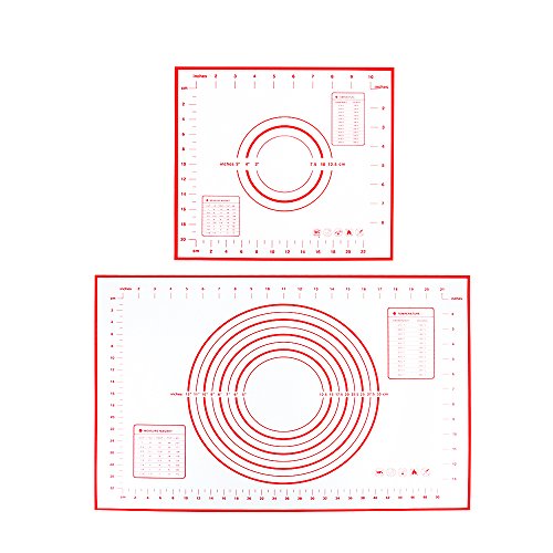 Silicone Baking Mat for Platinum with Measurements, Non Sticky Fondant Pastry Mats,High Temperature Resistance Rolling Mat (Red) (2, Large:23.62" x 15.74" Small:11.41" x 10.23")