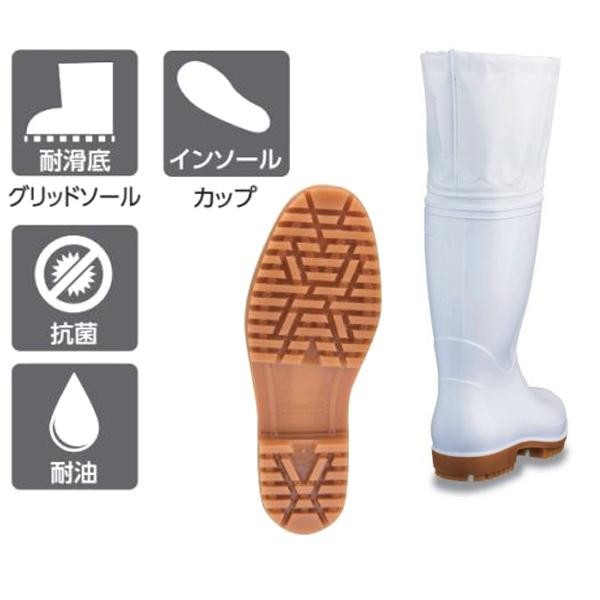 抗菌加工の素材使用。すべりにくく、耐油性・クッション性・グリップ力に優れているので、農・林・水産など様々な用途にお使いいただけます。また、履口のカバーが冷気等の侵入を防ぎ、靴内部を快適に保ちます。 |