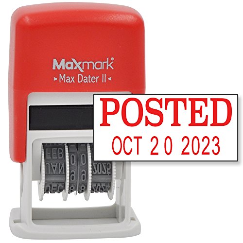 MaxMark Self-Inking Rubber Date Office Stamp with POSTED Phrase & Date - RED INK (Max Dater II), 12-Year Band