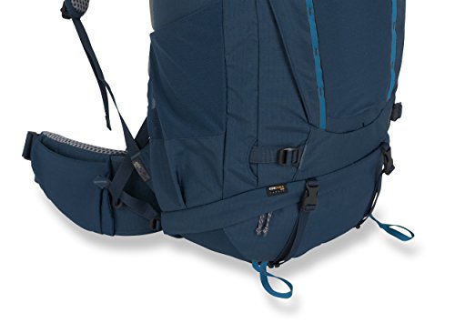 -. Feature : Multi-point ladder adjustment suspension for S/M/L/XL torso range / Right side angled water bottle pocket / Separate sleeping bag compartment with internal divider / TuningFork waistbelt framesheet for form fitting over iliac crest hip bone / Forward pull waistbelt with V adjustment webbing