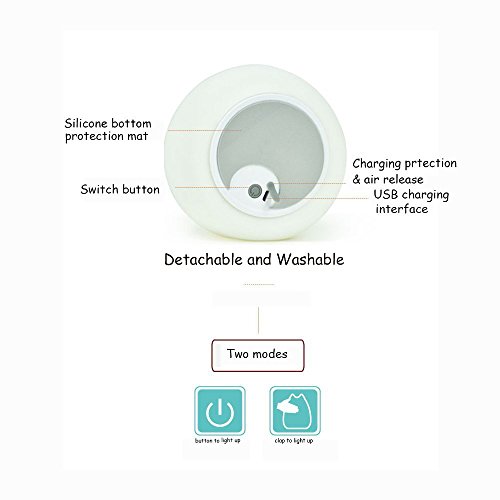 ☺Dual Light Modes&Tap Control: Press the base button to turn on/off. Tap the soft silicone surface to switch among normal white light mode, 7 colors breathing light mode and standby mode,