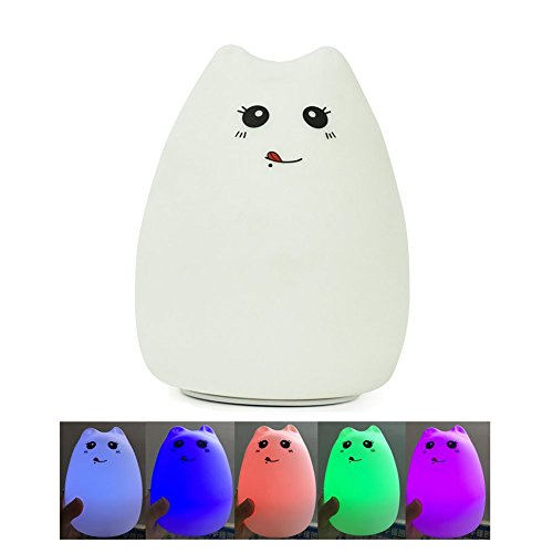 Features: ♦ Handheld Size and Standing Design for Flexible Placement. ♦ Warm Soft Light Offers Tender Guardian. ♦ Lovely Kitty Face Made by BPA-free Washable Soft Silicone. ♦ 12-Hour Portable Usage Supports All-Night Companion. ♦ Fabulous Gift Idea Especially for Babies, Kids, Girls and Ladies. Specifications: * Lamp type: LED night lamp * Material: Silicone+ABS * Model: GL-NL003 * Power: 0.4W * Input: 5V/400mA * Battery: 1200mAH Lithium * Charge Port: Micro USB * Item Size: 122X 122X 153mm * Work Life: 50000 hours * Portable Usage: 15 hours in normal white light mode; 12 hours in colorful breathing mode How to use: ☺ Fully charge the lamp by the packed USB cable before firstly using. ☺ One full charge(5V/0.5A) takes about 3 hours. The indicator keeps red when charging, turns off when fully charged. ☺ Press the main power button on the bottom to turn it on and the lamp will stay at normal warm white light mode. ☺ Tap the silicone surface to switch to automatic 7-color breathing mode, standby mode and then back to normal white light mode successively ☺ Press the main power button to turn it off. Package includes: ☺ 1 x KssFire Silicone Kitty Night Lamp with built-in rechargeable battery ☺ 1 x USB Charger Cable ☺ 1 x User's manual Our products have been tested, if any problem, pls contact us at the first time so that we can supply the best service for you.Feature