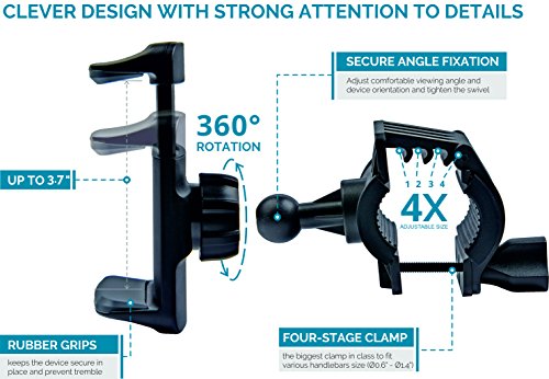 OUT AND OUT UNIVERSAL - we mean it, mount absolutely any smartphone to any bike or motorcycle! The holder fits any device up to 3.7 inches wide and fits all handlebars from 0.6" to 1.4" in diameter. Installation is easy as pie, no tools required.