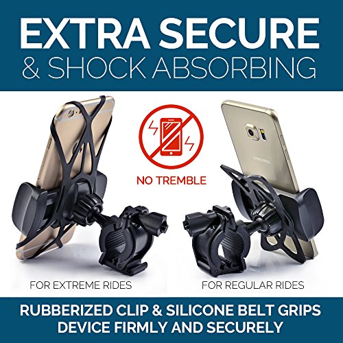 Bike & Motorcycle Cell Phone Mount - For iPhone 6 (5, 6s Plus), Samsung Galaxy Note or any Smartphone & GPS - Universal Mountain & Road Bicycle Handlebar Cradle Holder. +100 to Safeness & Comfort