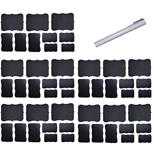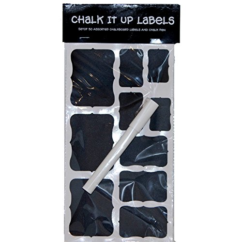 50 Fancy Rectangle Chalkboard Sticker Variety Pack with Chalk Pen in 4 Label Sizes