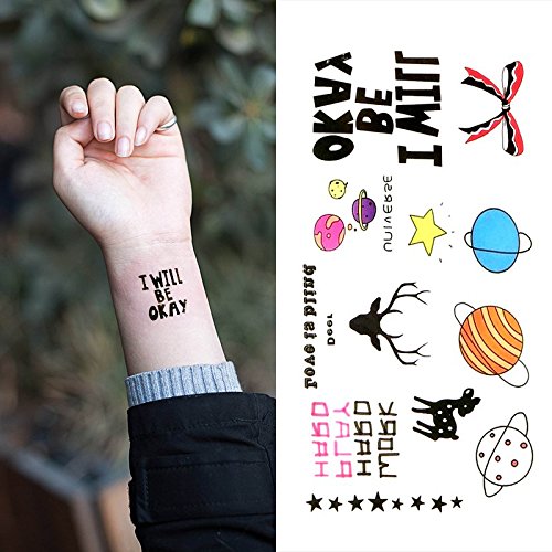 Oottati Small Cute Temporary Tattoo Planet Deer Star English I Will Be Okay (2 Sheets)