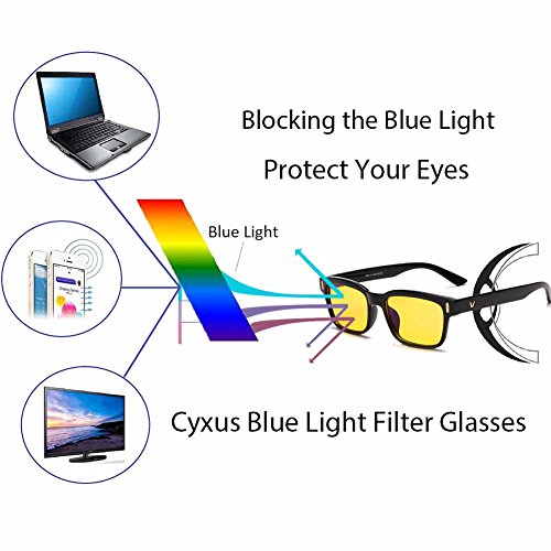 Cyxus Blue Light Filter [Better Sleep] Block UV Yellow Lens Glasses, Anti Fatigue Blocking Headaches Eye Strain, Computer Reading Eyewear, Great for Cell Phone Readers(Black Frame)