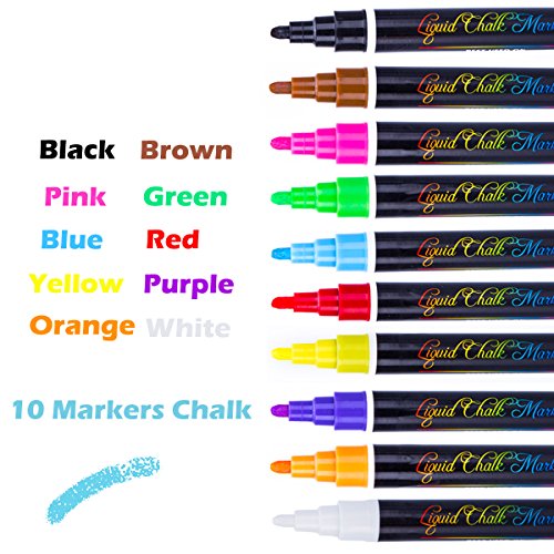 10 KINDS OF OPTIONAL COLORS: The bright liquid chalk can be used in infinite idead, the permanent pen can dry in a few seconds. And it not easy to be polluted after drying.The unwanted handwriting can be easliy wiped by a cloth.
