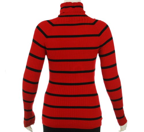 Turtleneck. Pullover style Red/Black Stripe 83% Rayon 14% Nylon 3% Lycra spandex Size: Large Brand : INC International Concepts EAN : 0733004702235 Product Dimensions(LxWxH) :