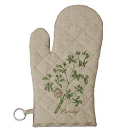 -. Feature : Clayre & Eef Ofenhandschuh Herbs Check / Kräuter / 16 x 30 cm / 100 % Baumwolle / Beige Braun Grün Gstert
