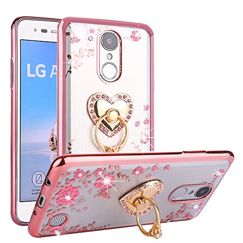 -. Title : CaseHaven LG LV3, LG Aristo Case, Glitter Crystal Heart Floral Series - Slim Luxury Bling Rhinestone Clear TPU Case With Ring Stand For LG LV3/ LG Aristo MS210 - Rose Gold