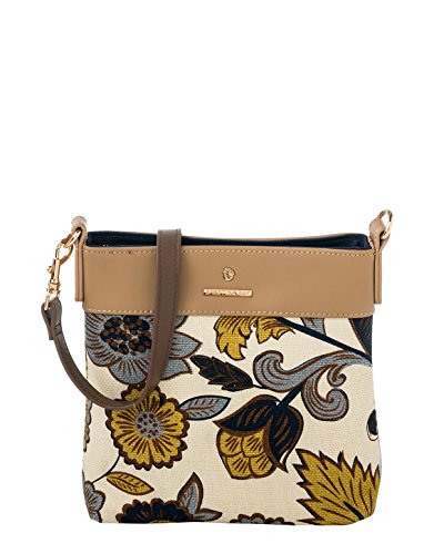 -. Feature : Signature linen with leather accents -Leather mounted gold tone logo plate / Removable shoulder strap with length adjustment / 2 interior open pockets -Interior zip pocket / Height: 9" -Depth: 2.25" -Width: 9" / Exterior zip pocket