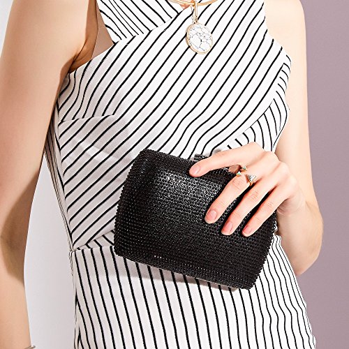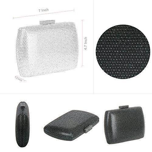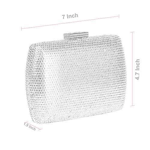 -. Feature : Elegant evening clutch bag covered in sparkling diamonds,3 style in 1 bag (shoulder, clutch, purse) handbag / EASY TO OPEN: Box clutch with a chic polished top snap closure which can be opened and closed smoothly. / Dimension: 6.8 in (L) X 1 in (W) X 4.8 in (H) .With 22" chain strap. / ROOMY INTERNAL: Large storage for your phone (FIT iPhone 7 plus ) lipstick, cash and credit cards, and other small items / Perfect for night out, date, cocktail party, family reunion, prom, banquet and so on