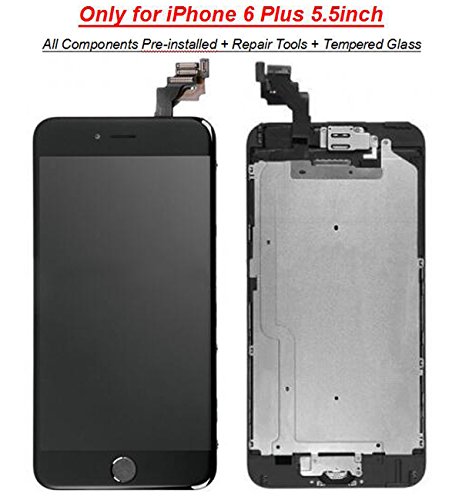 iPhone 6 Plus LCD Screen Replacement Digitizer Assembly with Proximity Sensor + Ear Speaker + Front Camera + Home Button + Screen Protector + Repair Tools - Not fit for iPhone 6S Plus (Black)