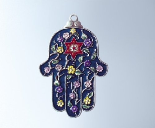 Detailed meticulously, our Kabbalistic Hamsa plaque is truly exquisite. We've hand enameled it in a deep blue, then embellished it colorful, raised flowers, each set with a sparkling Swarovski crystal. Perfect to adorn your wall or to hang anywhere.