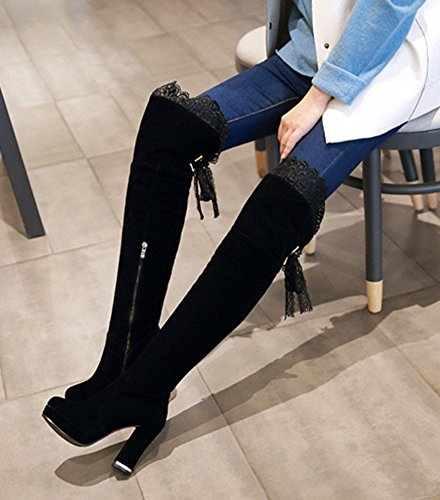 Binding : Apparel Product Description This pair of shoes is for women, girls, juniors and young ladies. You will look chic and stylish when wearing them. The heels measure 4.1 inches. You will feel comfy in their high chunky heels. This pair of shoes features ankle high and solid faux suede upper. You will look sweet in their round toe design. Its simple classic design will offer you an extravagant simplicity. It's convenient for you to wear in their side zipper and pull on closure design. The sole is made of good rubber. You will feel comfortable in their soft bottom. You can wear them to the office, school and shopping mall. They are of high quality and durable. We promise we will provide our customer with the best quality and lowest price. Your pleasant shopping experience is our eternal pursuit. Waiting for your coming! 0