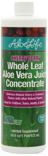 ReleaseDate : 2013-04-09 Studio : Aloe Life Publisher : Aloe Life Binding : Health and Beauty Product Description The cherry berry whole leaf aloe vera juice concentrate is the highest quality aloe vera in a bottle providing maximum benefits when taken daily, with 7 percent natural fruit juice concentrate added no sugar. Benefits include help with digestion and abs option when taken before meals, energy, immune system support, anti inflammatory support for the tissues and joints, allergies, liver support, bowel distress, skin. 0
