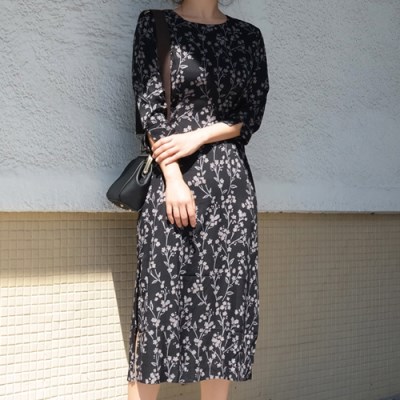 Elegant flower long ops와 같이 디자인에 패턴만 다른 상품이예요! 잔꽃무늬패턴으로 여성스러우면서 빈티지한 무드가 느껴졌고, 허리부분에 밸트가 고정되어있어 실루엣이 여성스러웠어요.