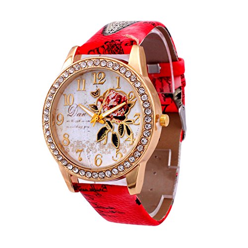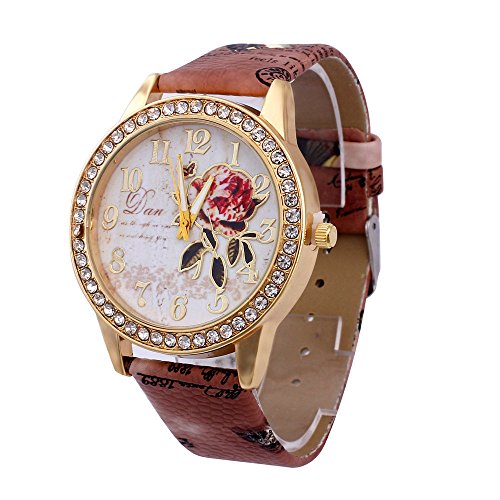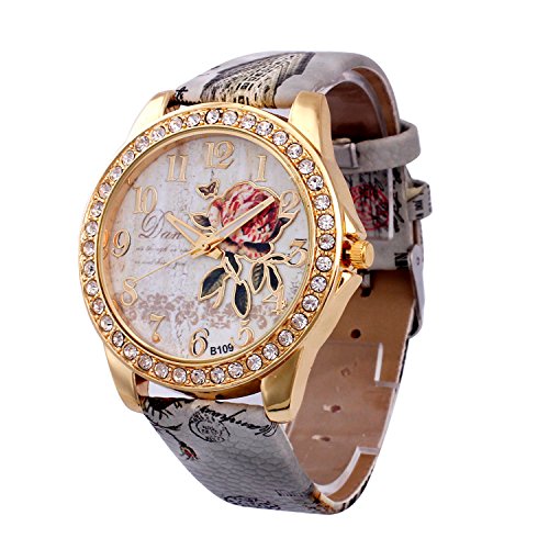-. Title : Womens Flower Watches,COOKI Unique Analog Fashion Clearance Lady Watches Female watches on Sale Casual Wrist Watches for Women,Round Dial Case Comfortable PU Leather Watch-H42