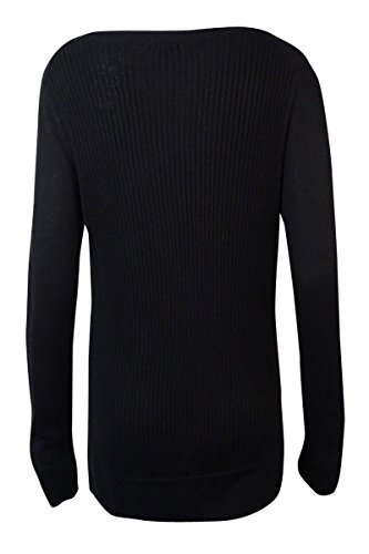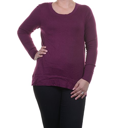 Sweater features no lining, scoop neckline, long sleeves, ribbed back and side panels, knit cotton blend fabric, and pullover style.