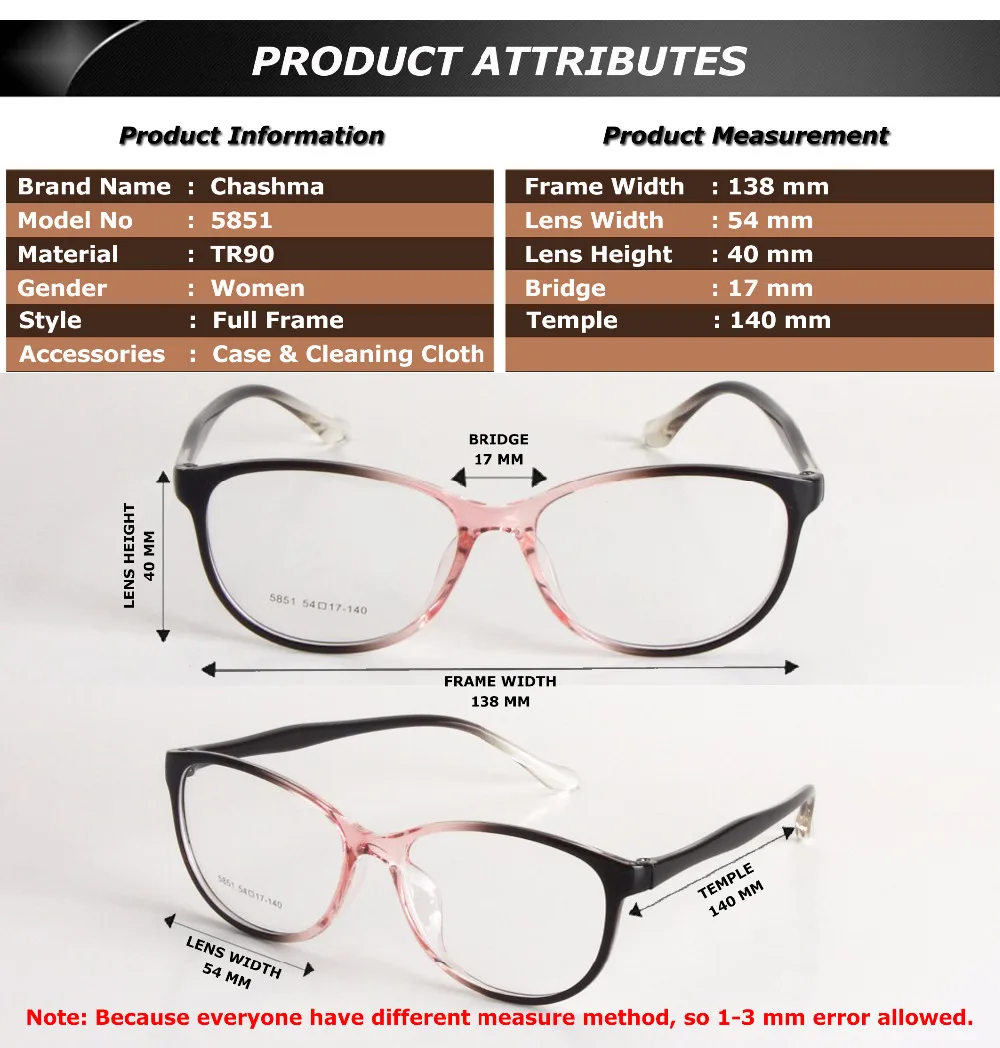 Measurement:54-18-145 (lens width- bridge-temple)