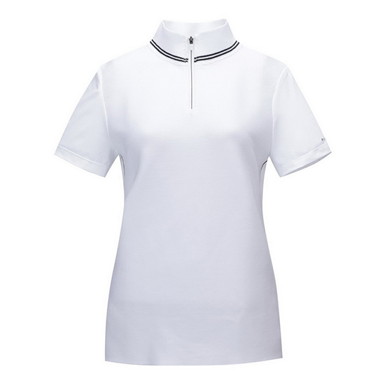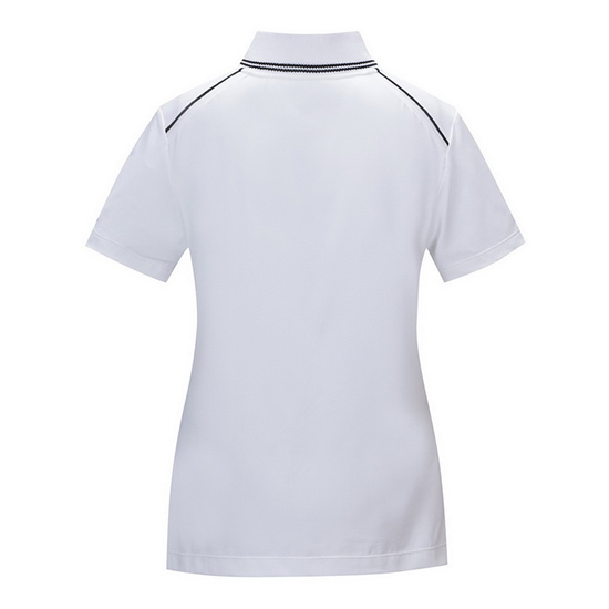 - 믹스 조직에 라인 배색 디자인의 여성 티셔츠.