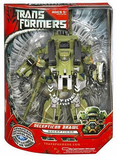 -. Binding : Toy -. Brand : Hasbro -. EAN : 0653569239512 -. Feature : Electronic robot-to-vehicle figure features lights and sounds, and partially automated Advanced AUTOMORPH Technology / Decepticon Brawl is proud to be a big, mean destruction-dealing machine / This TRANSFORMERS technology is designed to enhance Vehicle-to-robot conversion / Extend the arm blade in robot mode and move the turret in vehicle mode to activate awesome lights and battle sounds / This is one awesome figure for your collection / Partially animated mechanical triggers that activate the final shift to battle mode -. IsAdultProduct : 0 -. IsAutographed : 0 -. IsMemorabilia : 0 -. Label : Hasbro -. LegalDisclaimer : box has a small dent -. Manufacturer : Hasbro -. Model : 81399 -. MPN : MOV_BRAWL_LARGE -. PackageQuantity : 1 -. PartNumber : MOV_BRAWL_LARGE -. ProductGroup : Toy -. ProductTypeName : TOYS_AND_GAMES -. Publisher : Hasbro -. Studio : Hasbro -. Title : Transformers Movie Leader Decepticon Brawl -. UPC : 033170503200